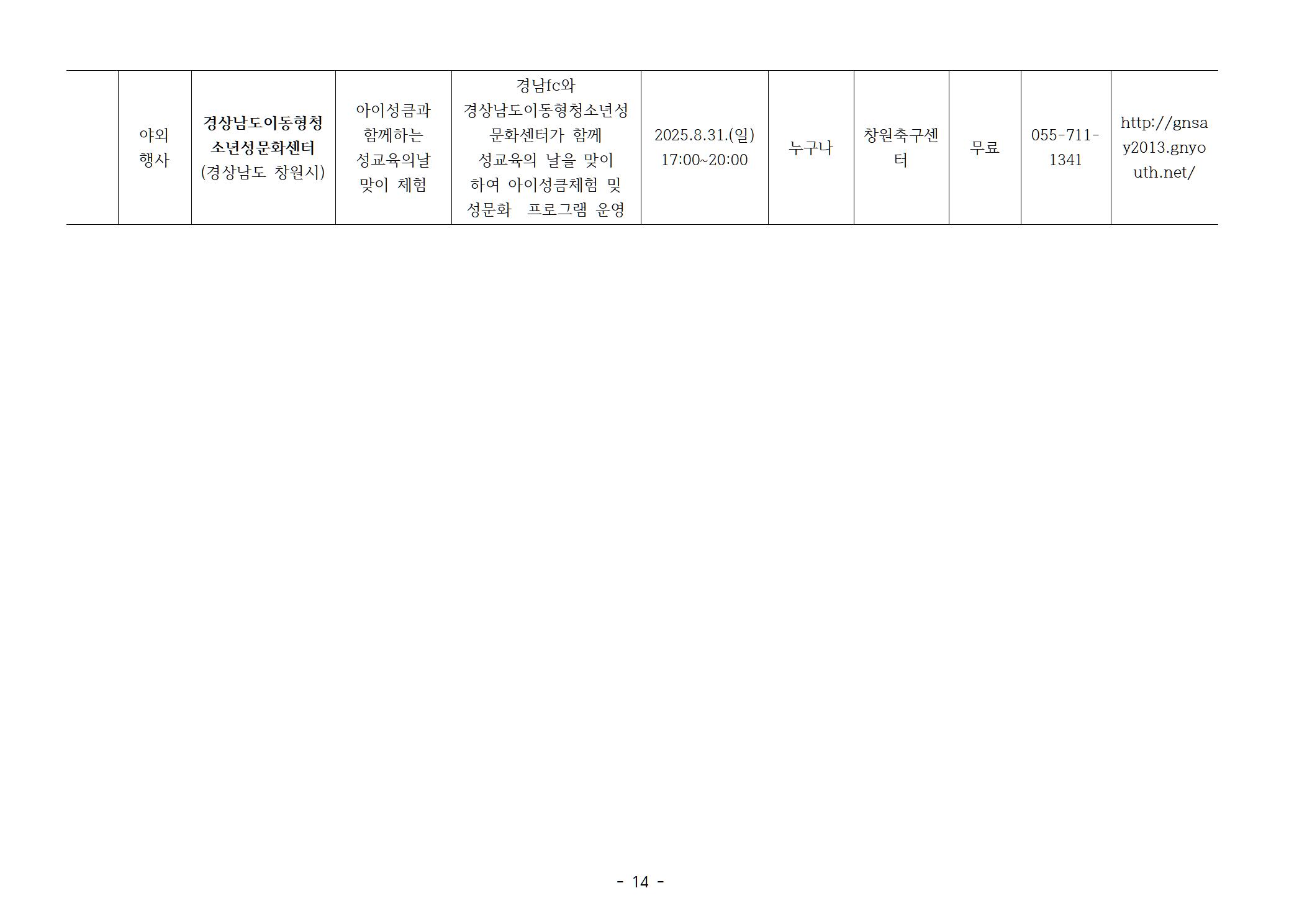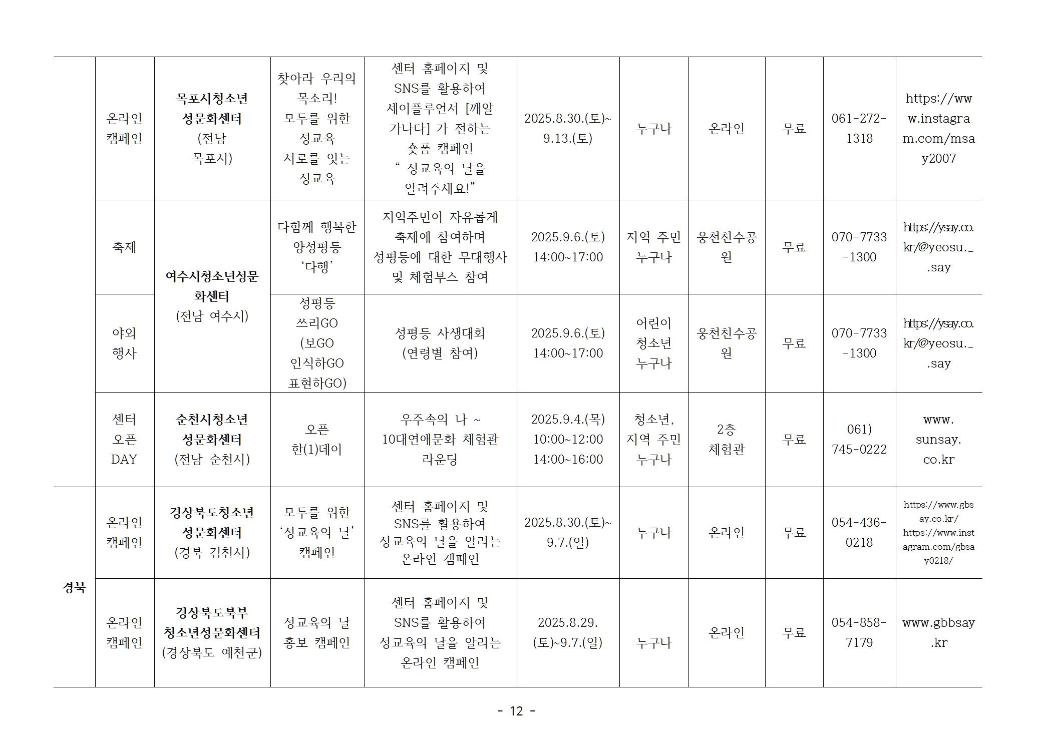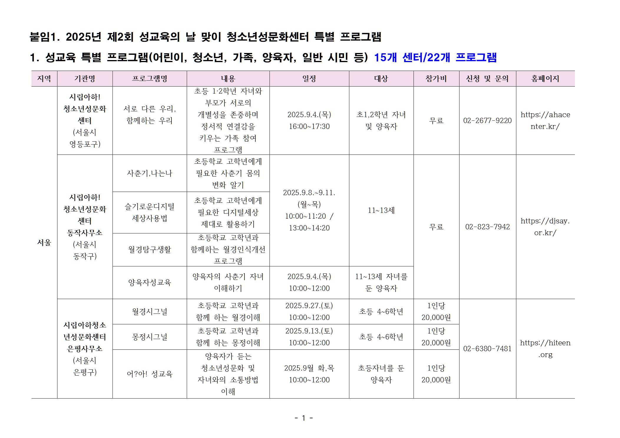 | 2024년 제1회 성교육의 날(9월 4일) 맞이 청소년성문화센터 특별 프로그램 (0) | 2024.08.19 |